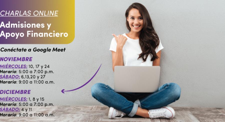 ¡La universidad te ofrece muchos beneficios! Si estás interesado en estudiar con nosotros y requieres información sobre los apoyos económicos y de nuestro proceso de Admisión, te invitamos a las charlas informativas para que conozcas todos nuestros descuentos y el proceso de financiación que tenemos diseñados especialmente para ti.