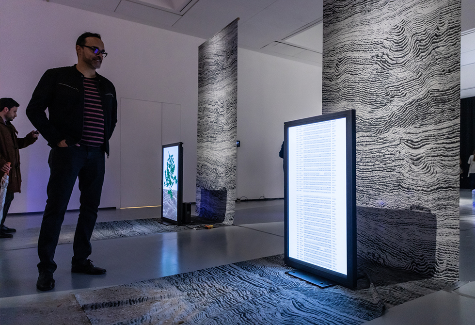 Tuvimos la oportunidad de hablar con la artista, Rejane Cantoni, quien exhibió la instalación de arte digital Floras. “Esta es una obra que está hecha con 50 videos, todos son NFT. Es como un cinema en tiempo real, que nunca se repite. Un jardín de luz y movimiento, arte algorítmico generativo. Es la vegetación y la flora brasilera, es la geometría de la naturaleza”, menciona.