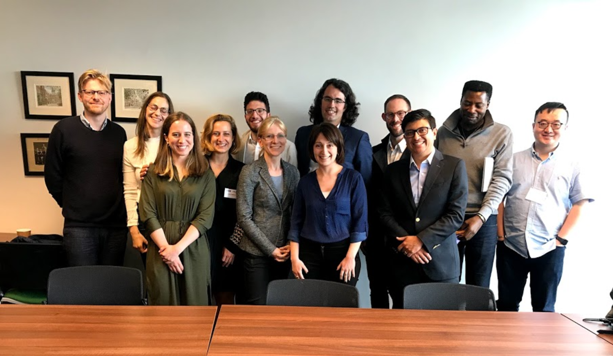 Visita del profesor Fabián Cárdenas a la Universidad Leiden; en la parte posterior, de saco azul oscuro y pelo largo, se encuentra el profesor Jean d'Aspremont. Foto: Cortesía.