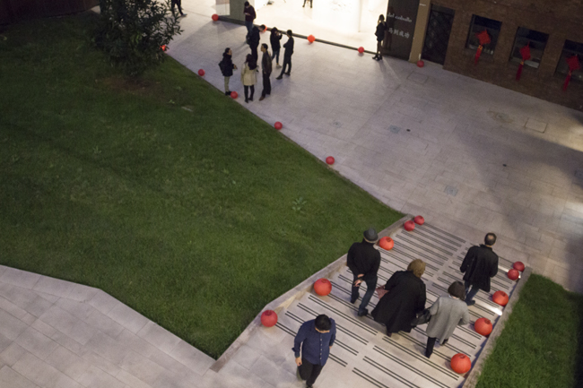 Un camino de faroles rojos guió a los asistentes a la exposición.
