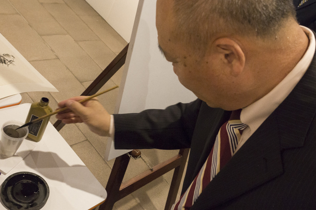 Tian Yuemin en su demostración de pintura.