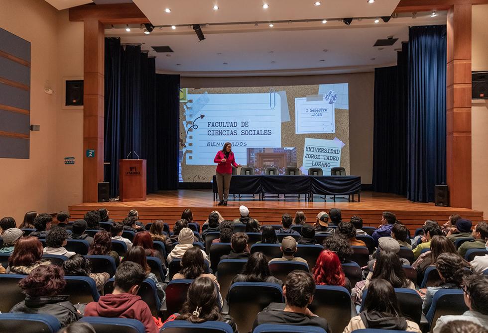 A su turno, Paula Valentina López, representante estudiantil ante el Consejo Directivo, les dio la bienvenida deseándoles éxito en esta, su nueva casa. “Tendrán la oportunidad de convertirse en otras personas, desarrollar sus pasiones y forjar su camino. Espero que disfruten los siguientes años en este lugar. Hagan de esta experiencia la aventura más grande de sus vidas. Sueñen en grande y aprovechen todos los espacios que la Universidad les brinda”.
