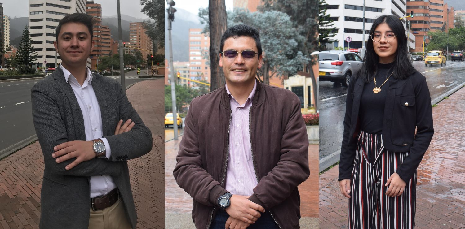 Algunos integrantes del Club de Finanzas de Utadeo. De izquierda a derecha: Roger Rodríguez, presidente y co-fundador; Edgar Jiménez, associated senior y co-fundador; Paola Bohórquez, vicepresidenta de Desarrollo y Finanzas Personales.