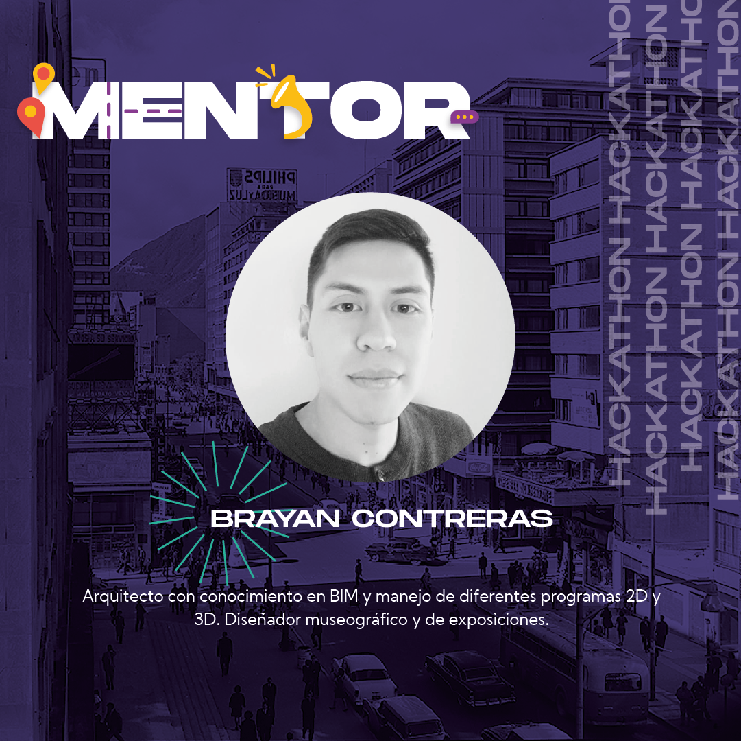 - Brayan Contreras - MentorBrayan Contreras - Mentor: Arquitecto con conocimiento en BIM y manejo de diferentes programas 2D Y 3D. Diseñador museográfico y de exposiciones.