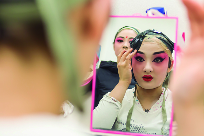 Nuestro espectáculo cuenta con vestuario de la etnia Min, pero lo que van a actuar es la historia de toda la Ópera de Beijing. El maquillaje de la ópera representa los atributos de sus personajes, que son cuatro: Jing (hombre con gran fuerza de voluntad), Sheng (hombre guerrero, joven o mayor), Ch’ou (hombre bufón) y Tan (mujer mayor, joven y alegre, joven y recta y guerrera).