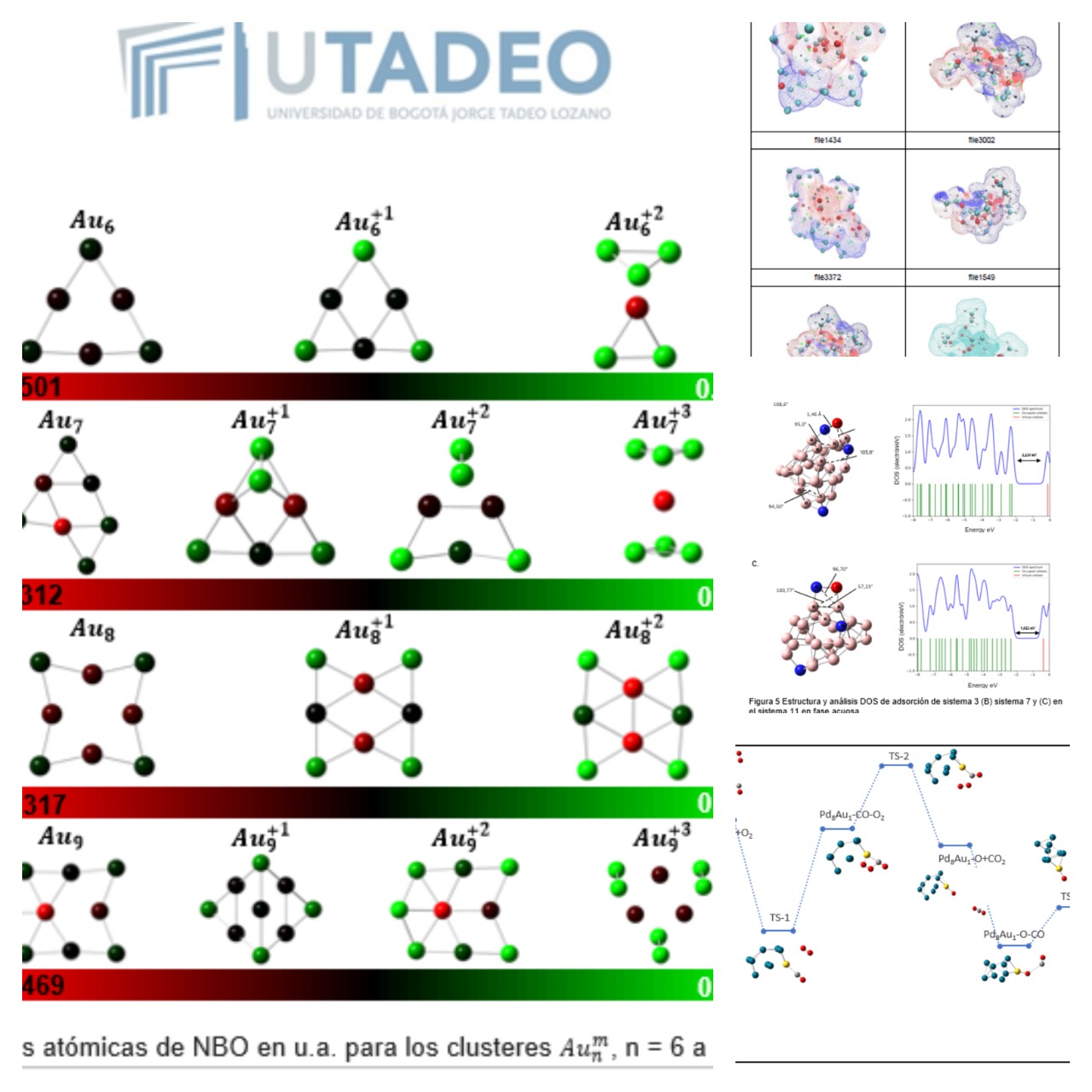 Distribución de carga, mapas de potencial electrostático, caminos de reacción y diagrama de densidad de estados a nivel molecular
