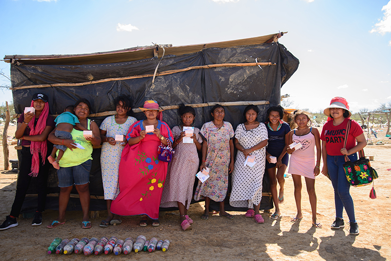 Talleres sobre cuidado personal, habilidades blandas, anatomía humana, fabricación de eco ladrillos y uso, beneficio y riesgos de la copa menstrual en la comunidad Wayuu de Uribia (La Guajira).