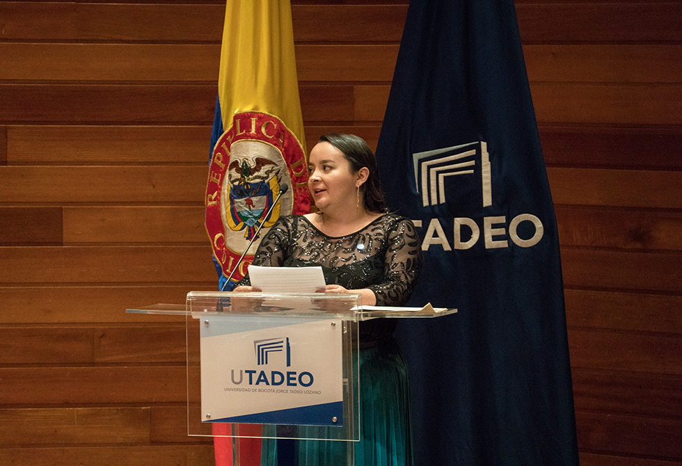 - Diana Patricia Morales Díaz, jefe de la Oficina de Bienestar, Seguridad y Salud Laboral de Utadeo, recibió su título como administradora de empresas.