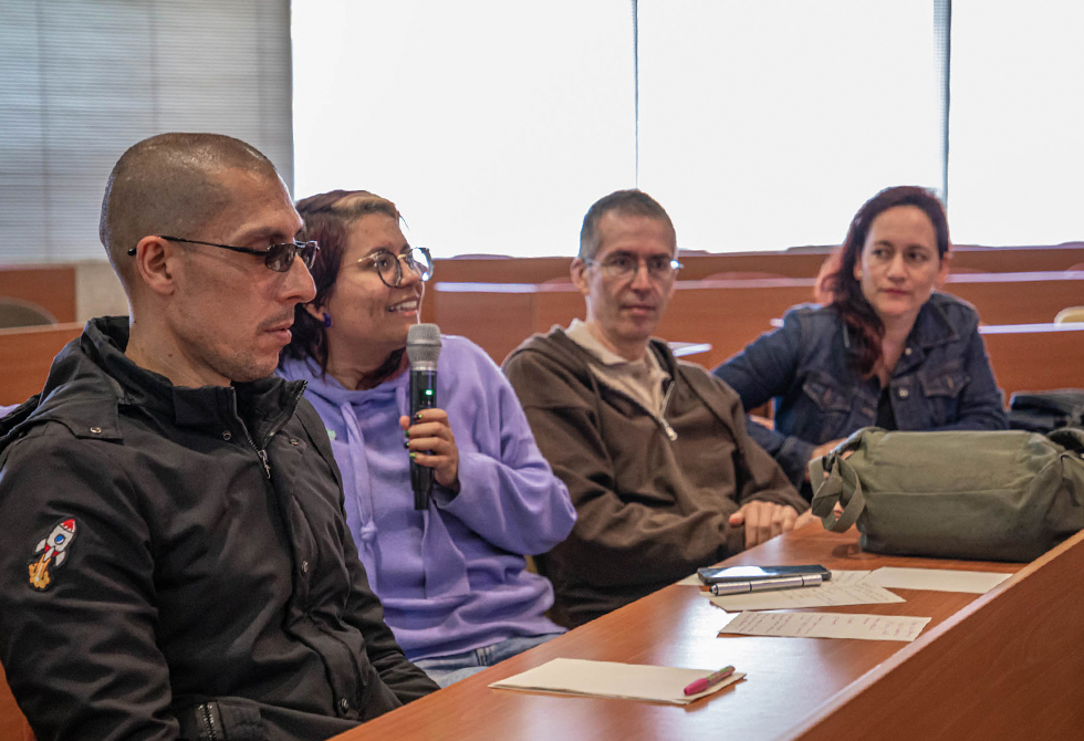 Los docentes de cátedra también asistieron; conversamos con Edison Gómez Amaya, profesor de libretos del Área de Cinematografía, quien agradece este tipo de programas para su formación y cree que la Universidad está a la vanguardia con temáticas como esta. “Los retos y cuestionamientos que se vienen con la IA son grandes, pero hay que pensar cómo usarla a nuestro favor en la labor educativa. Las preguntas que se plantean se vuelven una motivación de cómo resolverlas y como convertir estas herramientas en un aliado dentro de las aulas”, comentó.