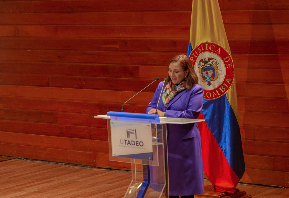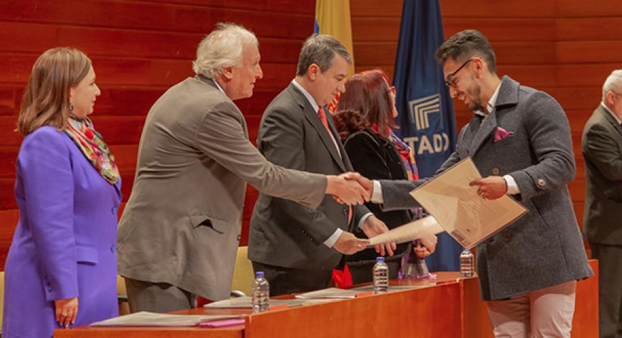 En representación de los graduandos, Natalia Montes de Oca Jaimes, graduanda de la Maestría en Gestión y Producción Cultural y Audiovisual, se dirigió a sus compañeros y familiares resaltando el esfuerzo que implica trabajar y estudiar para sacar adelante un posgrado. “Todos los esfuerzos que nos trajeron hasta aquí confluyen en un lugar llamado transformación. Deseamos que nuestra historia como país cambie, que nuestras memorias de violencia se transformen en memorias de paz. Esta esa es la oportunidad que tenemos el privilegio de recibir hoy, y por la que estamos agradecidos”.