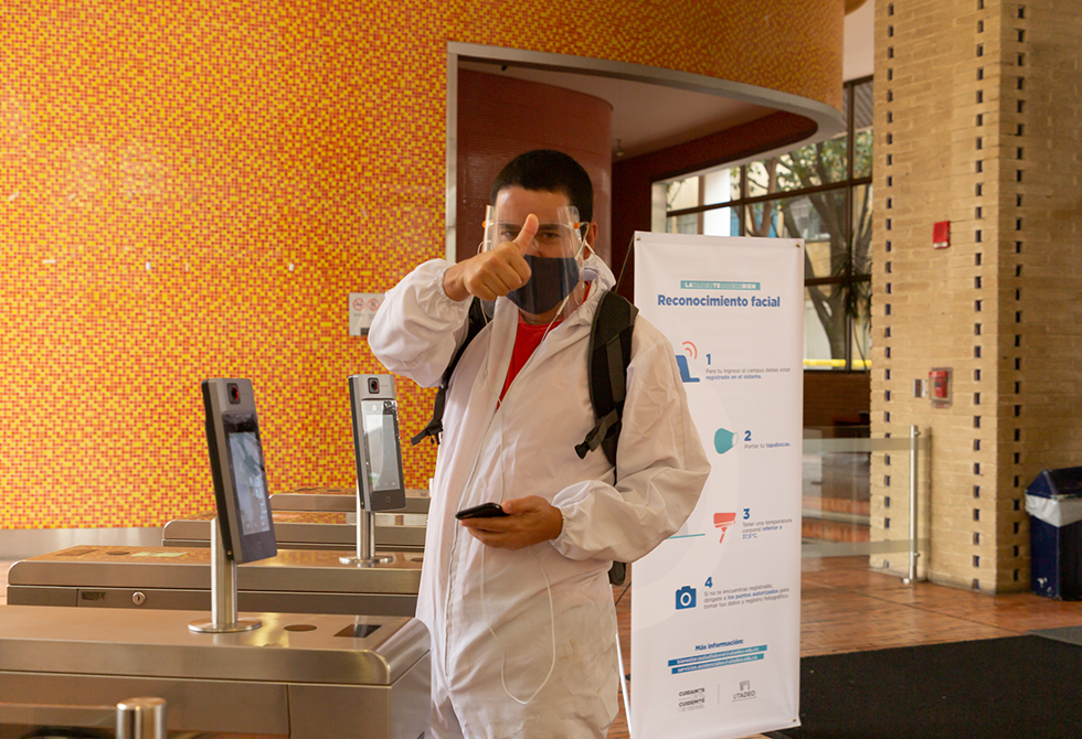 De igual forma, las instalaciones de la Universidad (ingresos, mobiliarios, espacios comunes, aulas de clase, talleres, laboratorio, biblioteca, salas de computo, Centro de Producción Audiovisual, baños y cafeterías, entre otros) se han adecuado para garantizar espacios seguros, con cámaras térmicas y termómetros, lavamanos portátiles, dispensadores de gel antibacterial, pediluvios y canecas especiales para desechar los tapabocas.