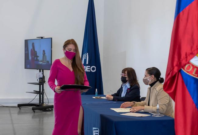 - Revive las ceremonias presenciales de entrega de diplomasOmar Andramunio, editor general de la Oficina de Comunicación de Utadeo, fue el maestro de ceremonias de estas entregas de diplomas.