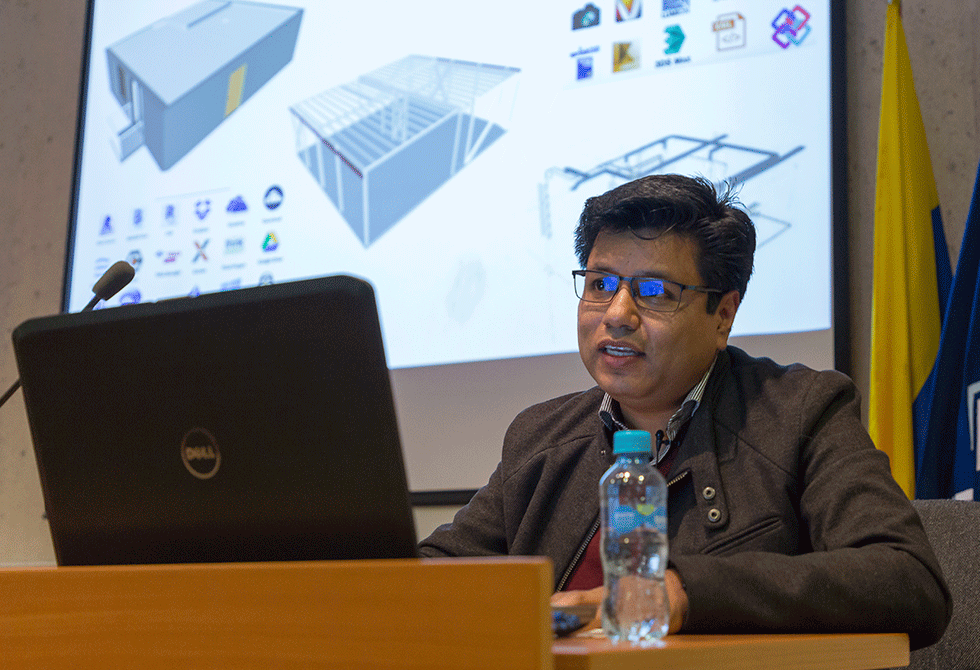 Entre los invitados a este encuentro estuvo el arquitecto Alfredo Montaño, docente de Utadeo e investigador líder en varios proyectos relacionados con la arquitectura, tecnología y patrimonio. En su charla "Building Information Modeling [BIM] y el proyecto de arquitectura”, dilucidó algunas de las características de esta metodología de trabajo colaborativa para la creación y gestión de un proyecto de construcción.