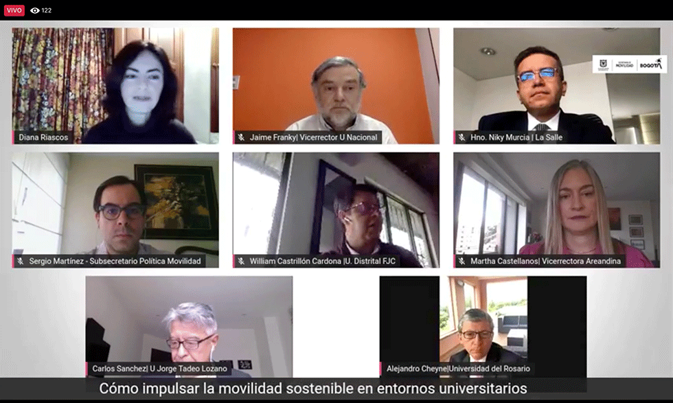Rectores de universidades públicas y privadas se dieron cita en este panel para hablar sobre movilidad sostenible. Foto: Captura de pantalla