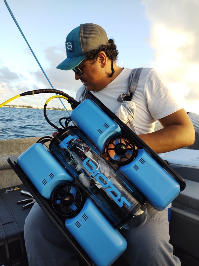 Fue así como nació Sepia Rov, un vehículo submarino que Omar desarrolló para llegar a mayores profundidades y obtener una mayor cantidad de datos. El dispositivo surge de las expediciones científicas, con el propósito de tener tecnologías locales que ayuden a las comunidades a gestionar sus propias investigaciones y la conservación de su territorio.