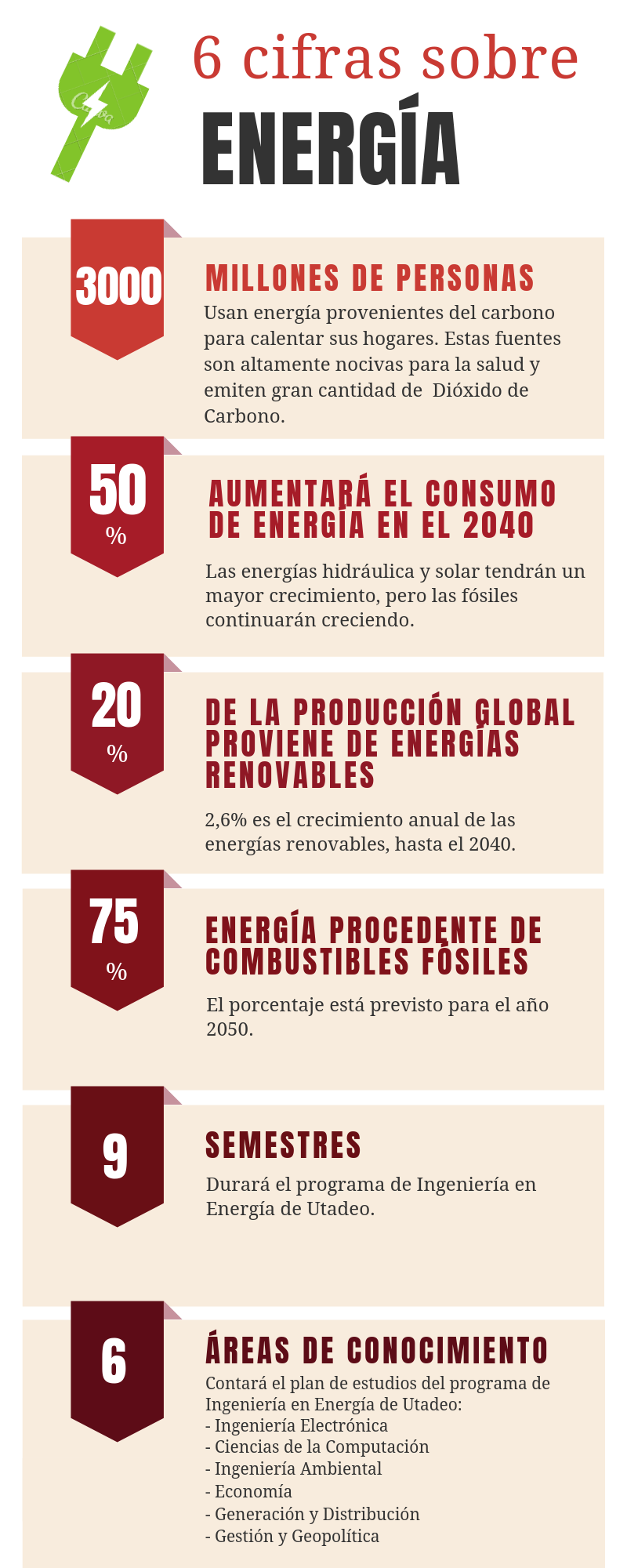 Garantizar la eficiencia, sostenibilidad y competitividad del sistema energético colombiano desde todas sus fuentes es, precisamente, el gran reto que enfrentarán los egresados de Ingeniería en Energía de Utadeo, programa que tuvo su pre-lanzamiento el pasado jueves 14 de febrero, con la conferencia del profesor invitado de la Universidad Autónoma de Barcelona, Asier Ibeas, quien brindó un panorama sobre el futuro de la energía en las próximas tres décadas.