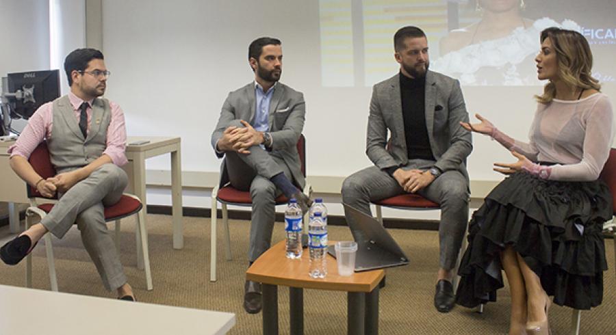 Una pizca de pasión y una fuerte dosis de persistencia y determinación, son los ingredientes secretos para lograr el éxito en el emprendimiento. Así lo reconocen el diseñador industrial tadeísta Juan Pablo Socarrás, y los empresarios Nicolás Pinzón y Camilo Sarmiento, en el conversatorio “Emprendimiento de lujo” que se llevó a cabo el pasado 23 de agosto como parte del ciclo de conferencias con expertos que adelanta el programa de Diseño y Gestión de la Moda de Utadeo.