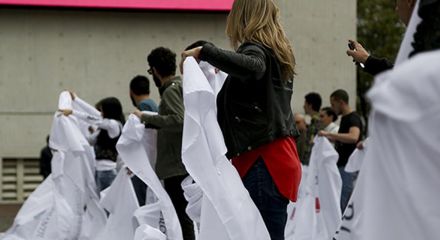 La intervención fue un rotundo éxito. Estudiantes de pregrado y posgrado de Publicidad colmaron la plazoleta de la Universidad, mientras los transeúntes y miembros de la comunidad académica prestaban atención a lo que allí acontecía en medio de casi una centena de sábanas blancas marcadas con el nombre de las víctimas y su respectiva fecha de desaparición y muerte, las cuales cubrían los cuerpos de los participantes. Para Paola Triana, estudiante de publicidad ”esto que estamos viendo hace reflexionar a la gente sobre cómo las víctimas son muchas veces ignoradas, aún cuando este conflicto no se ha acabado. Entonces este acto nos sirve para crear conciencia”.