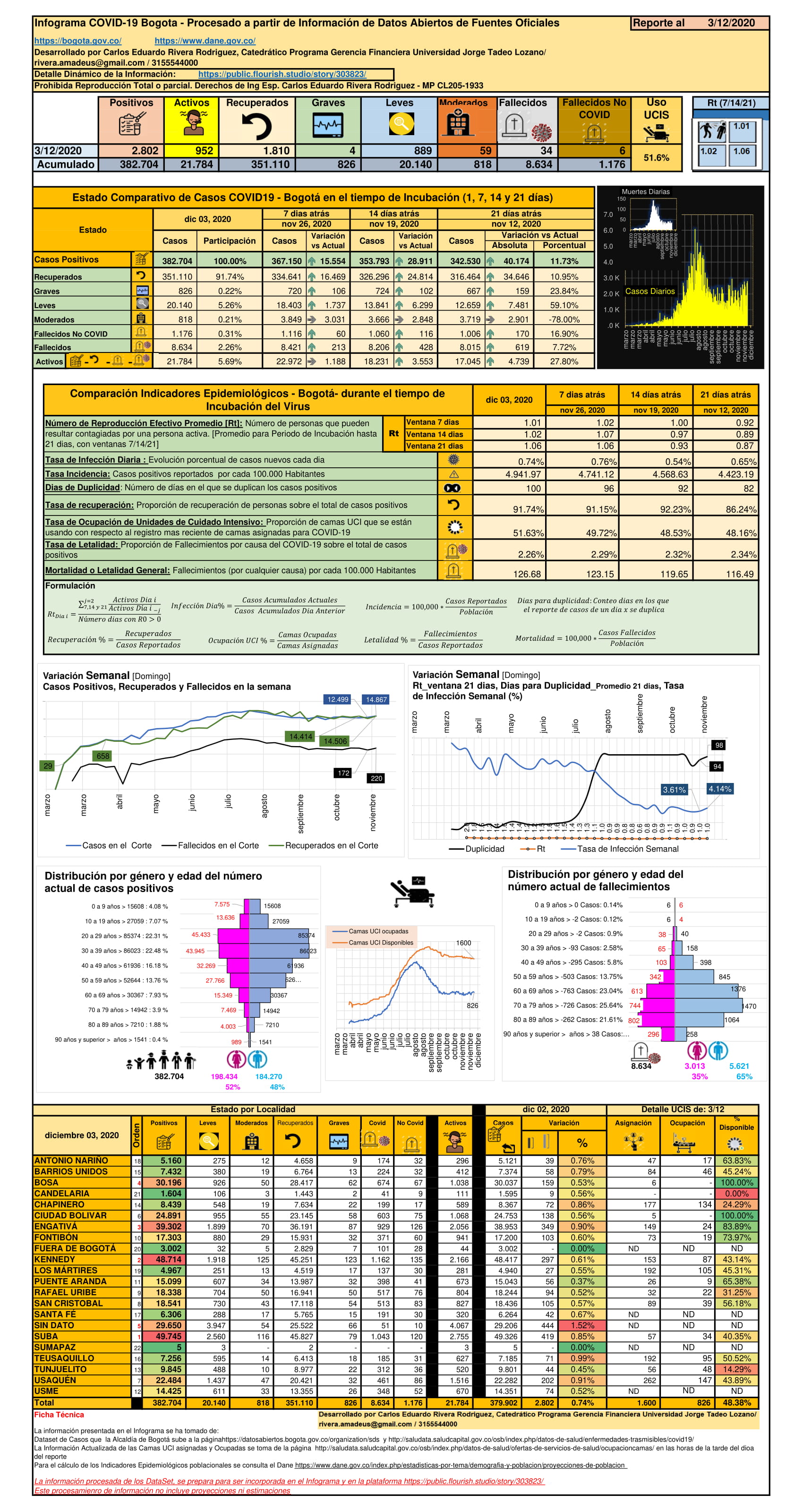 Mientras eso sucede, revisemos las cifras del País y Bogotá a corte del 3 de diciembre: