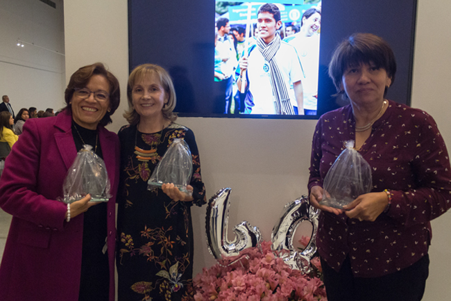 La celebración terminó por todo lo alto con la premiación a aquellos egresados, profesores y administrativos que han contribuido al posicionamiento del programa. Por su aporte al sector público, el galardón fue para Gustavo Mosquera, consultor en temas de legislación sanitaria en el Ministerio de Salud y el Invima; por su aporte al sector industrial, el premio fue para Julio Mario Bernal; por su aporte al emprendimiento, Otto Rodríguez fue el merecedor del premio; en el ámbito académico, Luz Indira Romero, par evaluador del Consejo Nacional de Acreditación, profesora, investigadora y directiva en la Universidad de la Sabana, así como Ligia Rodríguez, quien durante 17 años ha estado vinculada a Utadeo como profesora e investigadora y fue de vital ayuda en el primer proceso de Acreditación de Alta Calidad del programa, fueron las merecedoras del reconocimiento.