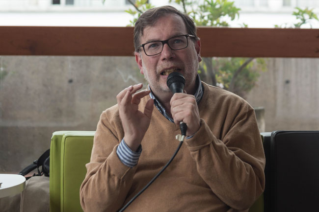 Es posible “reconocerse como habitante de la ciudad a través de las palabras”, señaló el escritor bogotano Andrés Ospina, en el conversatorio Las ciudades como espacios literarios el pasado lunes 10 de septiembre en Utadeo, evento en cual participó también el poeta Ramón Cote.