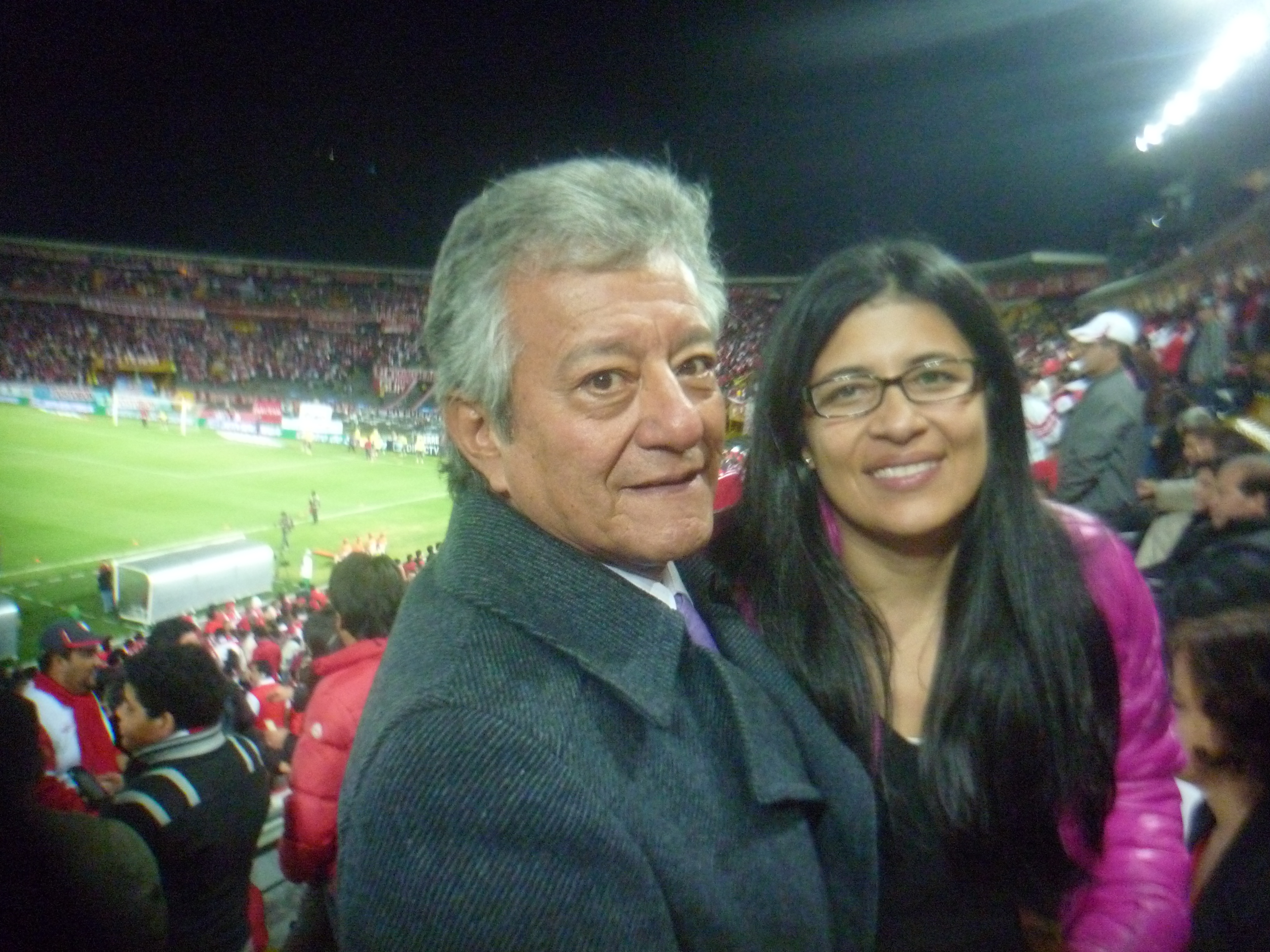 José Jairo Vásquez y su única hija disfrutando uno de los partidos de Santa Fe.