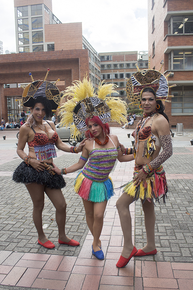 En medio de los sonidos antillanos que retumban por la plazoleta y los vestidos de colores hechos artesanalmente con materiales reciclables por las mismas mujeres transexuales que deleitaron al público con su baile, resaltan dentro del público tres de sus compañeras de la Red de Apoyo. Se trata de Gina, Silvia y Evelyn, quienes no se pierden ningún show de sus amigas.