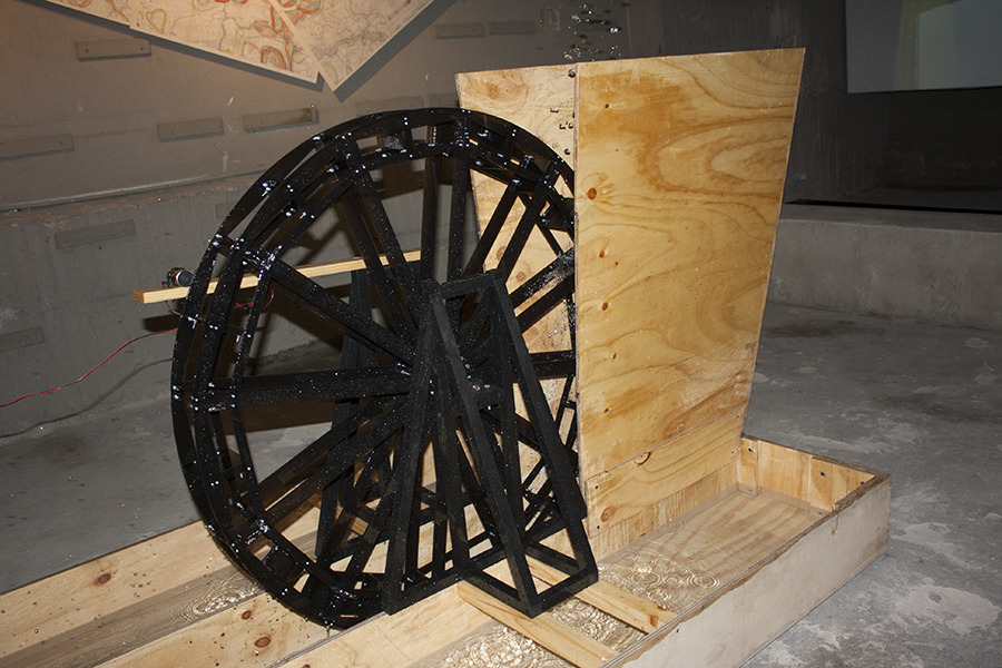 Precisamente sobre ello, José Roca, director artístico de Flora ars+natura y co-curador de la muestra, indica que el proyecto inició en las conversaciones con Andrés García La Rotta de Idartes e Isaac Dyner. La propuesta artística que ahonda en los temas de la energía y la sostenibilidad se finiquitó luego que el Museo de Bogotá otorgara en comodato el Monumento a Los Héroes para la exposición: “El Monumento es un lugar muy particular, muy crudo y grande en el primer piso, pero pequeño en sus siguientes tres niveles, entonces fue un reto conseguir una exposición que se adaptara a las condiciones del lugar”, relata Roca, para quien otra de las apuestas fue no poder hacerle modificaciones al lugar, debido a que es patrimonio arquitectónico, razón por la que tuvo que acudir al montaje de doble pared y estructuras en hierro para colocar las pantallas de la exhibición.