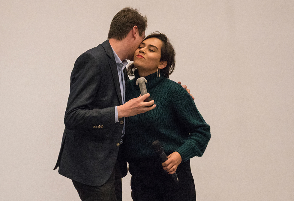 El momento más emotivo de la noche fue cuando Julián Velásquez, profesor que lidera desde hace diez años Imagen Palabra, en compañía de los estudiantes del Semillero de Ilustración entregaron el Perro de Plata, un emblema de este festival que denota la fidelidad y furia, pero también la versatilidad y la vitalidad en el diseño. Los reconocimientos fueron para Pastora Correa, directora de los programas de Diseño y Gestión de la Moda, Diseño interactivo y Realización de Audiovisuales y Multimedia; Francisco Pabón, director de la Escuela de Diseño, Fotografía y Realización Audiovisual, y Rosario Gutiérrez.