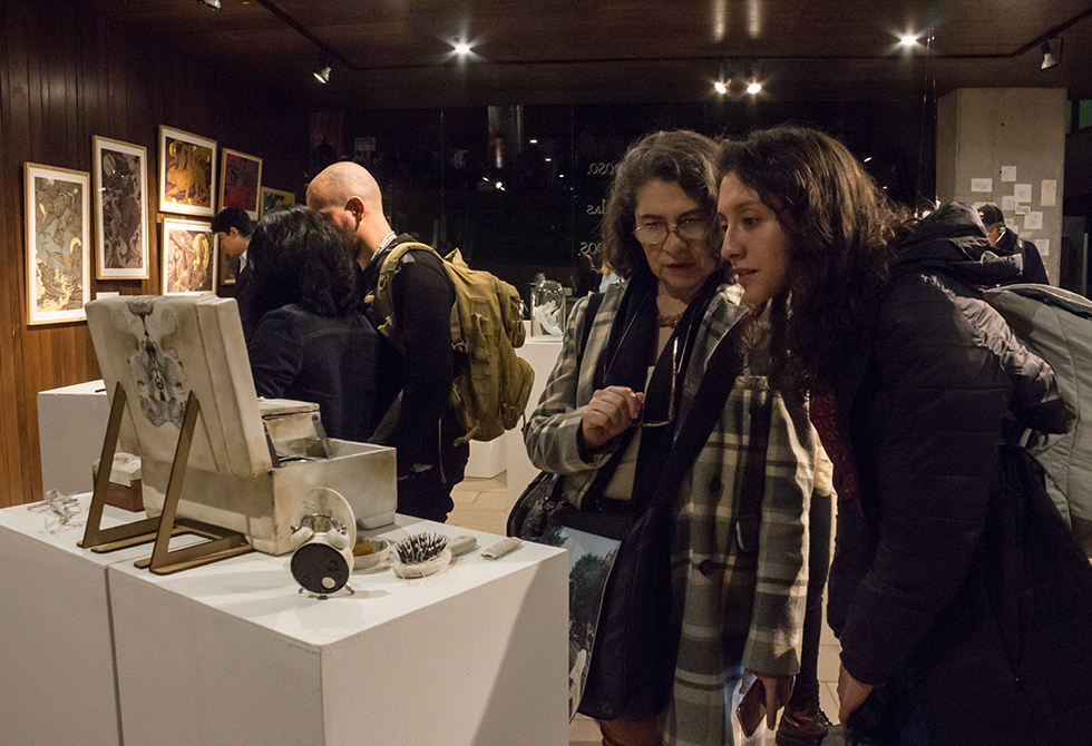 Una explosión de colores, formas e imágenes experimentales que van desde la ilustración tradicional, pasando por las acuarelas digitales hasta llegar a técnicas poco conocidas como la monococción de platinas con óxidos metálicos que permiten dar vida a interesantes apuestas escultóricas, así como la presencia de la fotografía como documento social que da cuenta de las memorias de los pueblos, a través de relatos visuales desde los sanatorios mentales de Sibaté hasta llegar a los ya poco utilizados rituales de la fotografía post-mortem, nos hacen reflexionar sobre la posibilidad de vivir en un mundo sin imágenes, al tiempo que nos invita a dejarnos cautivar por el mensaje que nos propone cada una de estas apuestas.