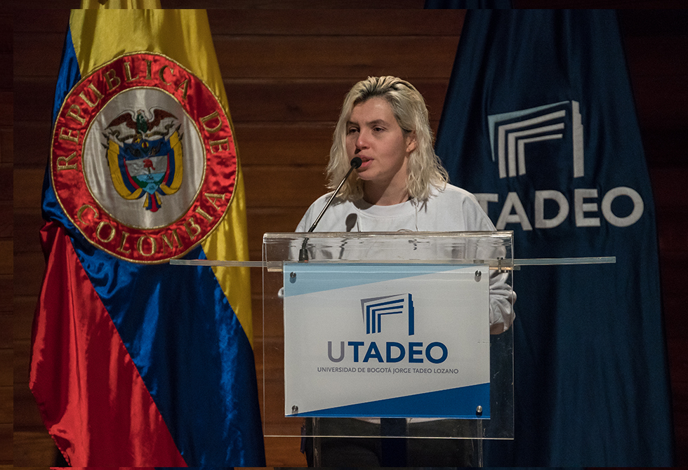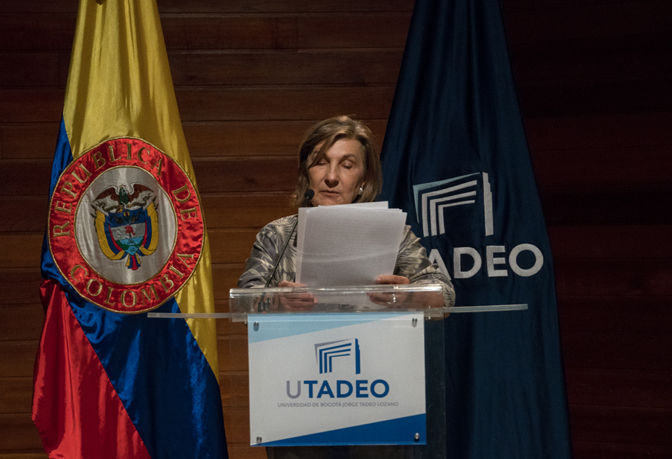 En el discurso, la rectora le dio la bienvenida al rector electo de Utadeo, Carlos Sánchez.