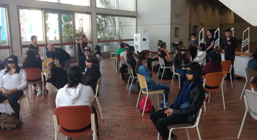 Pero el homenaje no terminó ahí. Con la intención de convertir las palabras en sensaciones, el grupo de teatro de Utadeo, a cargo de Yair Callejas y con el apoyo del Centro de Arte y Cultura, vendaron los ojos de los asistentes, mientras se recitaban fragmentos de la obra y recreaban el escenario de la novela con sonidos y olores.