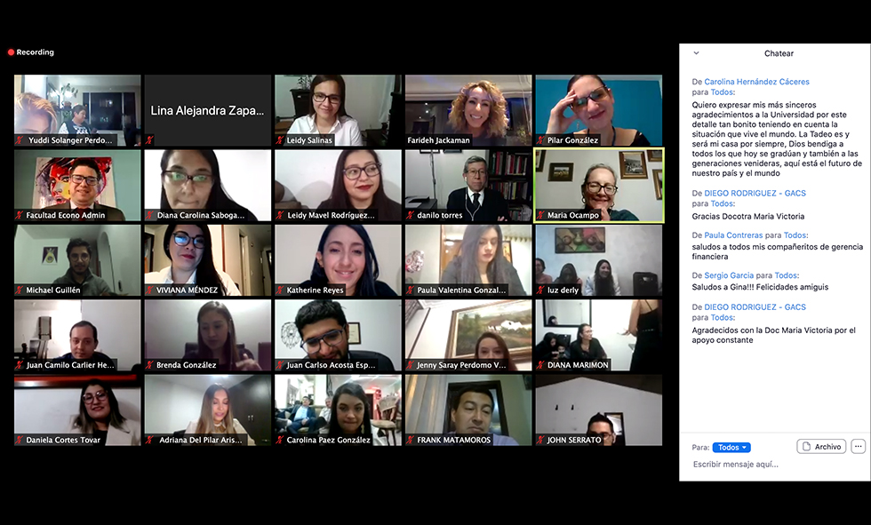 Precisamente, son esas gratas experiencias vividas durante uno, dos, cuatro, cinco o más años las que brotan a flor de piel en una mezcla de emociones que hoy nos hacen ser testigos de nuestros máximos logros a través de la pantalla de un computador, en un momento único en el que, por primera vez en su historia, Utadeo llevó a cabo su ceremonia virtual de grados, en la que obtuvieron su título 494 tadeístas.