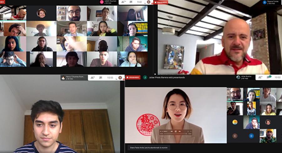 Estudiantes de los diferentes programas participaron en la charla del Instituto Confucio. Foto: Captura de pantalla