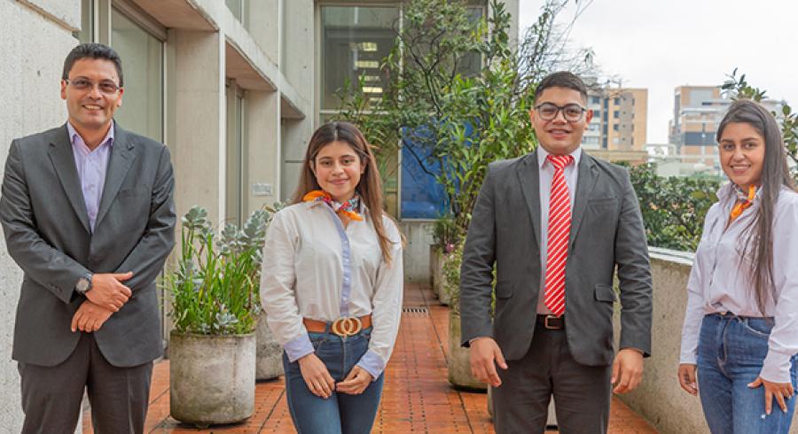 El grupo de está integrado por Luisa Fernanda Castiblanco Aguilar, Lina María Quiroga Ochoa, quienes pertenecen al programa de Economía y Ricardo Montenegro Vargas de Contaduría Pública, acompañados por el profesor Edgar Jiménez Méndez, todos hacen parte del Club de Finanzas y del Laboratorio Financiero de la Universidad.