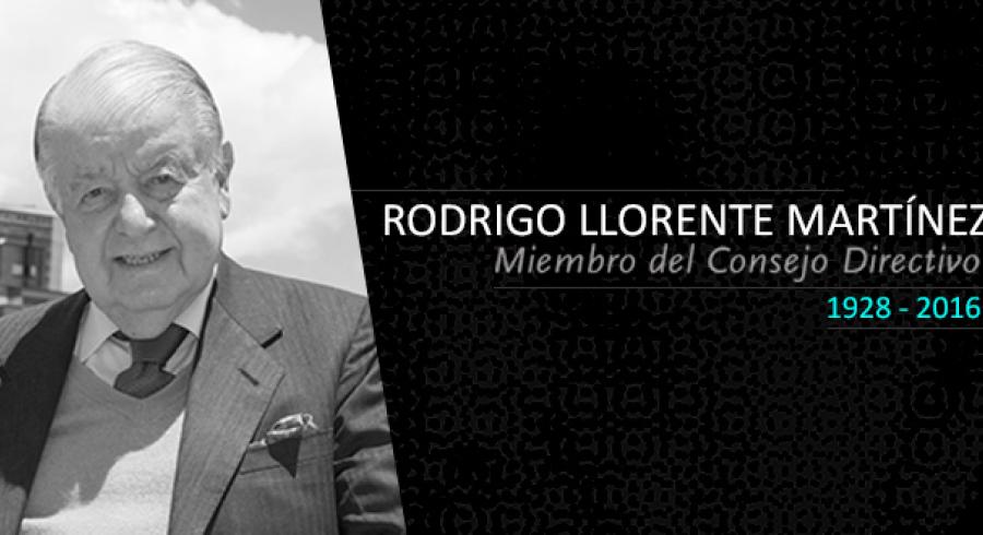 Jaime Pinzón López, Presidente del Consejo Directivo de Utadeo, señaló que "Rodrigo Llorente forma parte de la historia de la Universidad Jorge Tadeo Lozano y de su Consejo Directivo; toda la comunidad del claustro lamenta su fallecimiento, pero sabemos que su nombre está inscrito en las realizaciones conseguidas hasta el presente y en las futuras. Fisicamente concluye una vida de honor que perdurará en nuestra institución".