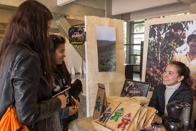 En esta feria también se tuvo en cuenta el emprendimiento. Con el ánimo de ayudar a su familia, Isabella Atolines creó una propuesta para posicionar la imagen del café que cultiva su familia. El Café Mullalpa proviene de una única finca, y su empaque de papel ayuda con la reducción del uso de plástico.