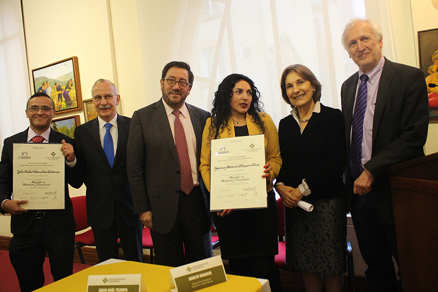 Por su parte, Santos aplaudió el hecho de que los graduandos de la Maestría marquen con su impronta y saberes a la sociedad, brindándoles soluciones a los problemas actuales por las que atraviesa el país: “Esta es una prueba de éxito de la colaboración académica que han sostenido durante los últimos años Utadeo y la Universidad Central en diferentes ámbitos. Nuestros egresados nos dan la confianza de que llevaran a la sociedad su capacidad para abordar problemas reales de alta complejidad, mediante el análisis preciso de escenarios, así como el uso de modelos matemáticos y conceptuales rigurosos y la aplicación correcta de las tecnologías”.