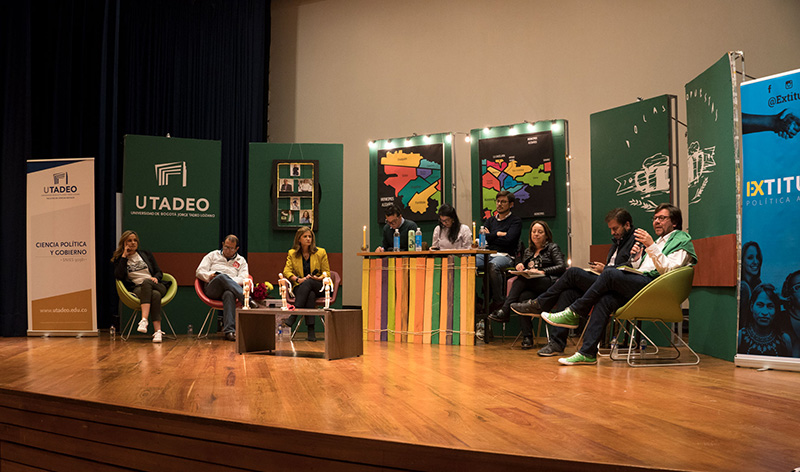 Con el ánimo de fortalecer el voto informado en la comunidad universitaria de la ciudad, el Departamento de Ciencia Política y Relaciones Internacionales de Utadeo, en conjunto con el colectivo Polas Opuestas y Extituto, llevaron a cabo el debate con las cabezas de lista al Concejo de Bogotá, que contó con la participación de María Andrea Nieto (Cambio Radical), Jorge Rojas (Partido FARC), Marisol Gómez (Bogotá para la Gente), Ana Teresa Bernal (Colombia Humana UP MAIS); Andrés Forero (Centro Democrático), y Diego Cancino (Alianza Verde). En el evento trascendió el compromiso de todos los candidatos de no aceptar sus esquemas de seguridad, de llegar a ser elegidos como concejales, y de esa manera contribuir al fortalecimiento del pie de fuerza de la Policía Nacional en la capital del país.