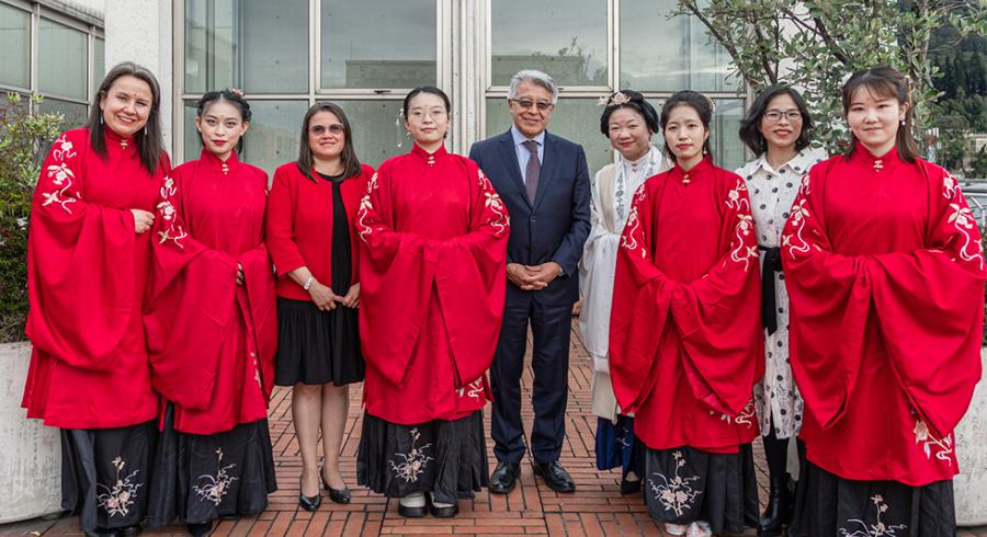 La ceremonia inició con las palabras de apertura del Rector quien habló de la historia del Instituto Confucio Utadeo, el trabajo realizado, el interés por continuar con la cooperación y le dió la bienvenida a las cuatro nuevas profesoras que llegaron de China para apoyar el proceso de aprendizaje de idioma chino y las actividades culturales.