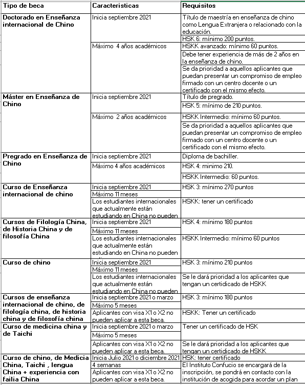 Los estudiantes internacionales que actualmente están estudiando en China no pueden aplicar. | HSKK Intermedio: mínimo 60 puntos | |
