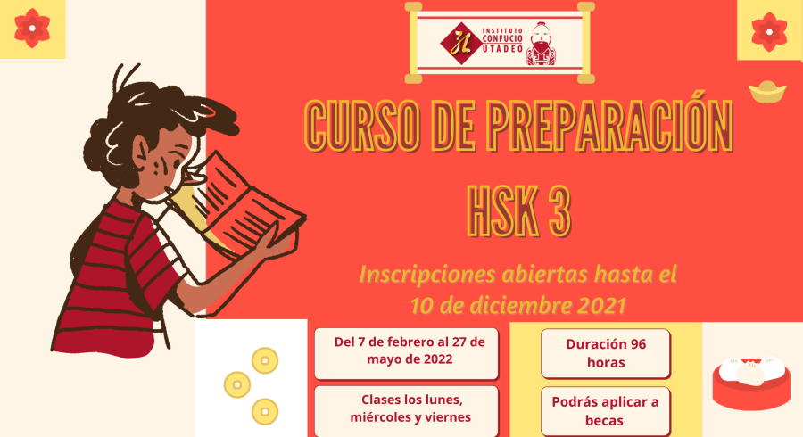 El instituto Confucio te invita a inscribirte al curso de preparación para HSK 3, este curso será virtual y se dictará en español. El objetivo del curso es dar herramientas a los estudiantes que ya han presentado el examen HSK nivel 1, para que puedan tomar el examen HSK nivel 2 y nivel 3.