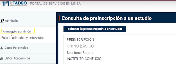 Aquí debes solicitar la preinscipción a tu curso.