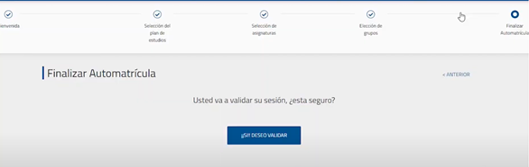 Y para finalizar, validas tu matrícula, y podrás generar el recibo de pago