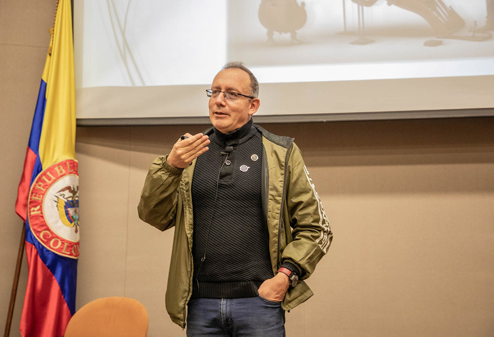 La conferencia con la que se entró en materia fue: “El arte de la cultura y la tecnología en el desarrollo de una sociedad del conocimiento”, dictada por el Dr. Edgar Puentes Melo, director del programa Construcción de Comunidad con la OFB (Orquesta Filarmónica de Bogotá). En su intervención, resaltó el impacto de estos campos como ejes centrales en la construcción de una sociedad apropiada del conocimiento, la innovación y la experimentación científica. “La creatividad es un proceso de selección natural. La relación de los ecosistemas y las comunidades construye nuestro complejo y diverso Patrimonio Cultural”.