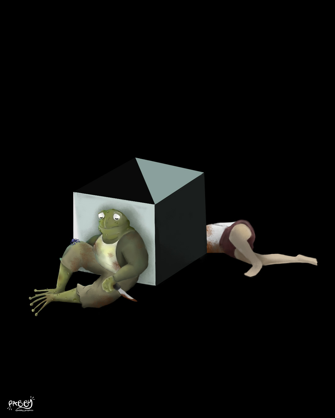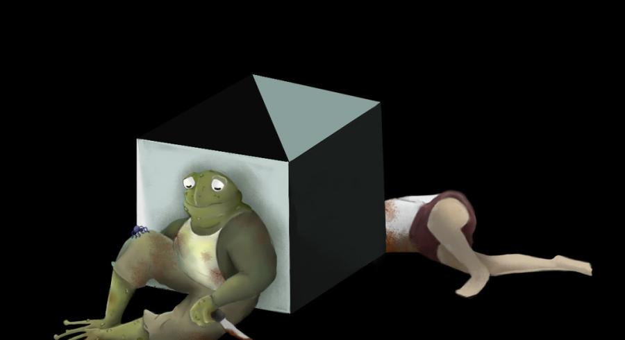 Día 9 (junio 22 de 1987): Maldita sea, no he podido deshacerme del asqueroso cadáver. Pesa demasiado y el hedor que emana me enloquece. Probablemente es por eso por lo que estoy delirando y me convertí en un anfibio. Mi organismo aparenta ya no ser mío, parece que está desposeyéndose de mi integridad. Tal vez sea mi imaginación, pero creo que me he tragado todos mis dientes, se fueron cayendo poco a poco sin darme cuenta y me los he pasado. Mi piel también ha sufrido cambios, se ha ido cayendo a pedazos y en las cicatrices que deja han surgido asquerosas verrugas dolorosas.En la mañana de hoy, igualmente, se desprendió mi última uña, ya no tengo ni en las manos ni en los pies, y pequeños hongos salen de la sangre de mis dedos. En cuanto a comida… únicamente he podido saciarme con las cucarachas, lombrices, arañas y moscas que salen del cuerpo de mi esposa (jamás se había visto tan radiante), mi mandíbula no da basto a cualquier otra cosa comestible. ¿Mi vista?, ha estado extraña, sinceramente, a veces veo en tonalidades azules, amarillas, rojas y verdes, lo que ha causado que me estrelle con las paredes y los muebles. Mi torpe lengua me hace vomitar todo el tiempo, no cabe completamente en mi boca y es tan áspera que lastima mi paladar. Lo peor aquí es mi columna, se ha convertido en una montaña tan curva que me obliga a andar en cuatro patas, provocándome un dolor incesante. Me pregunto en repetidas ocasiones si esta transformación es como un tipo de “castigo divino” o las repercusiones de haber matado a mi mujer…