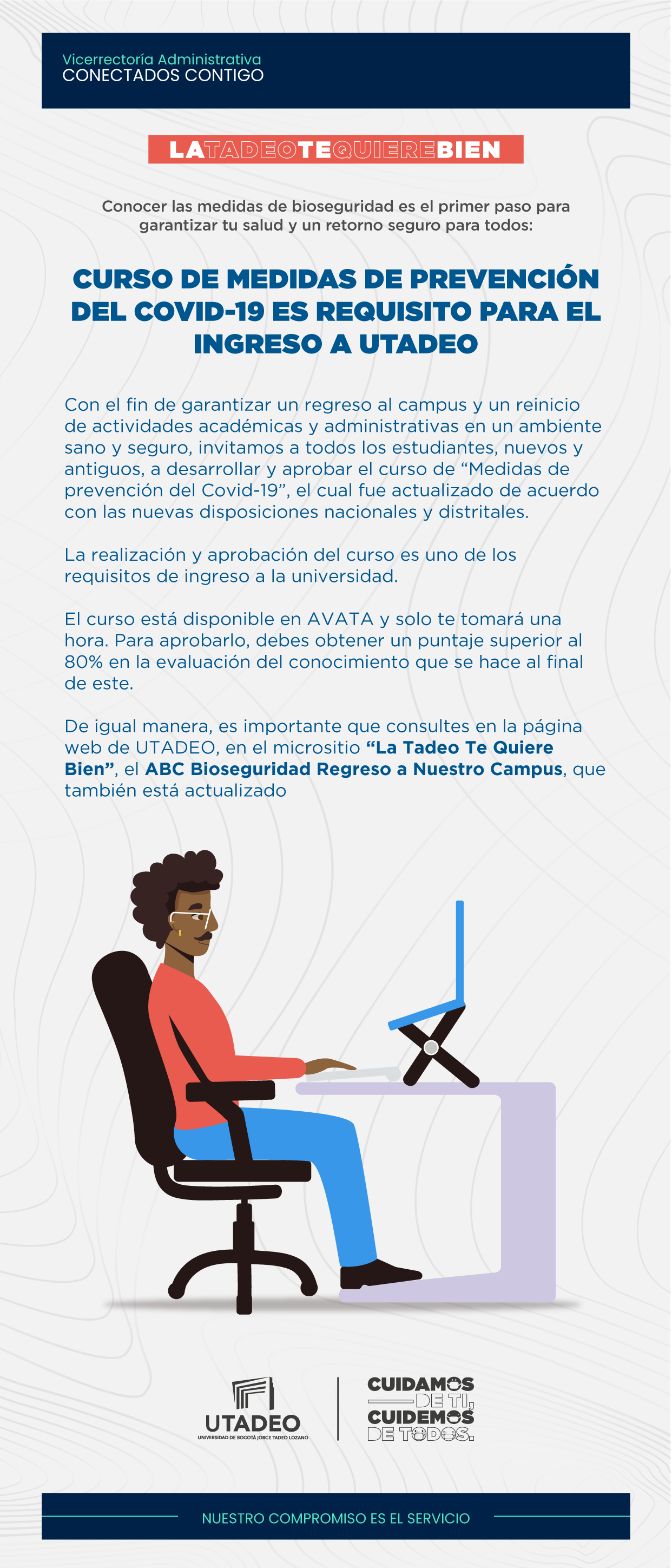 Ya estamos preparados para iniciar las clases y todas las actividades académicas y administrativas presencialmente en el 2022 con los más altos estándares de bioseguridad. Para ello, desarrollamos el “Protocolo de Regreso a Nuestro Campus", que estudiantes, docentes y funcionarios deben tener en cuenta antes, durante y después de ingresar a las instalaciones de la Universidad.
