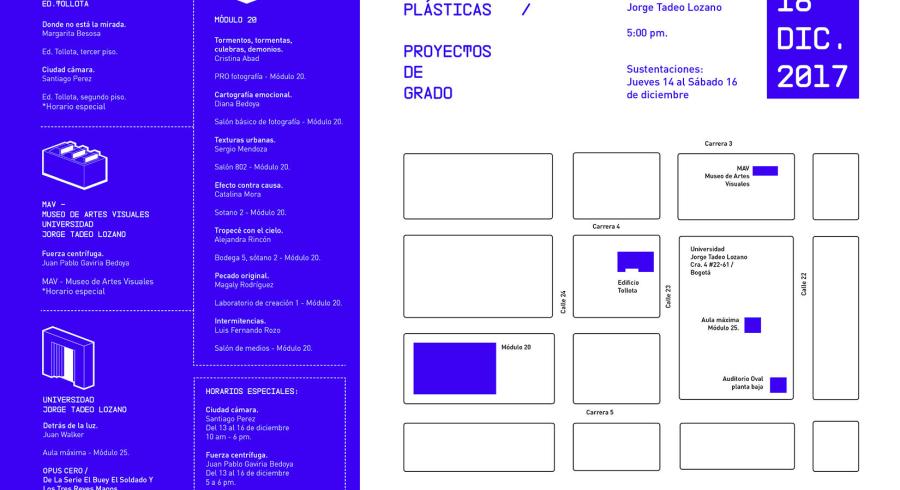 La Facultad de Artes y Diseño, la Escuela de Artes Plásticas y la Maestría en Artes Plásticas se complacen en invitar al la muestra de los Proyectos de grado de la primera cohorte de la MAP, del 13 al 16 de diciembre.