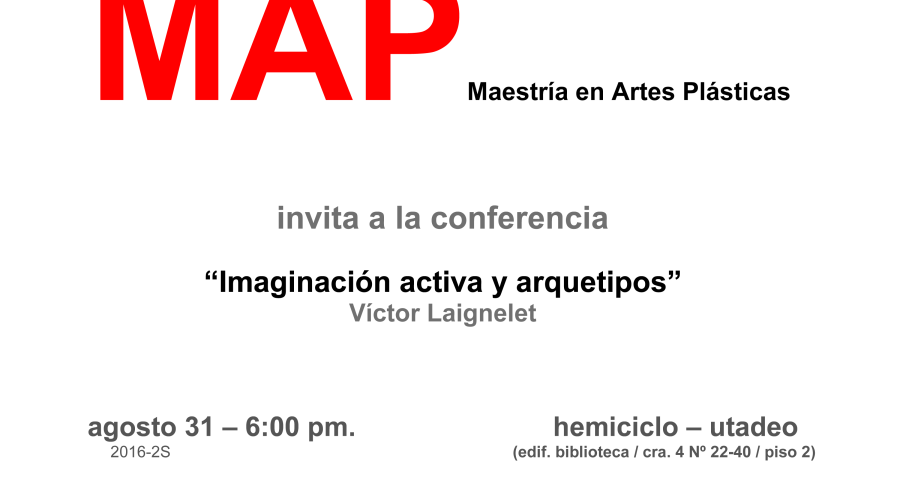 La MAP invita a la conferencia del maestro Victor Leignelet, "Imaginación activa y arquetipos", la cual se dictará en el marco del Seminario II de la MAP el día jueves 31 de agosto a las 6.00 pm en el Hemiciclo del Edificio Biblioteca de la UJTL, Cra 4 # 22-40, piso 2.