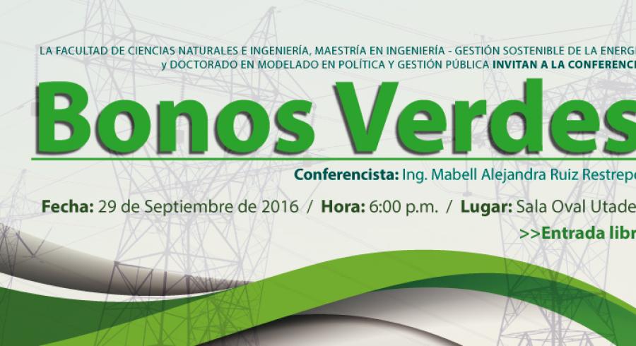 El próximo jueves 29 de septiembre, el Doctorado en Modelado en Política y Gestión Pública y la Maestría en Ingeniería - Gestión Sostenible de la Energía invitan a la charla Bonos Verdes, encuentro que busca dar un breve contexto sobre la situación actual del desarrollo sostenible, profundizar sobre el abordaje que se le está dando a cada uno de los programas e iniciativas en el tema sostenibilidad y brindar una reflexión sobre los retos actuales y futuros que tiene la ingeniería para aportar a la construcción de un país sostenible.